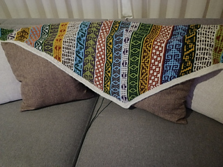 The mosaic is worked only from a chart. Also, note that this pattern is ONE SIZE. To make the shawl larger, increase your yarn weight and needle size. Suitable for fingering to worsted weights.