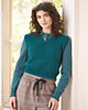 Jennie Atkinson has designed this collared sweater and matching vest for winter layering. Both pieces use a pattern of textured diamonds and zigzags. The vest is knitted in a darker teal shade, while the jumper is in a lighter teal; both have subtle stripes of the other shade around the openings. Jennie has used World of Wool’s pure Merino Fluff 4 Ply yarn.