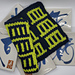 This is a double-knit scarf using redesigned Amimoji motifs. The motifs are Japanese Kanji characters, Yama (山), Kawa (川), Kusa (草), Ki (木), meaning Mountain, River, Grass, Tree, respectively.