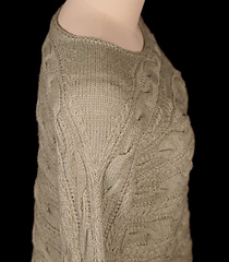 Over combined charts, 33 sts & 36 rows = 4”/10cm with larger needles, blocked