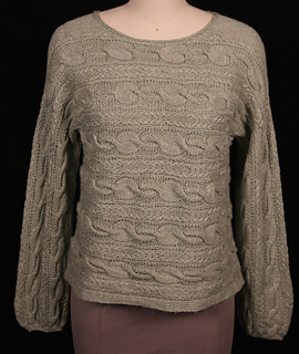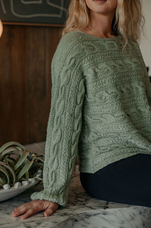 Continuing my fascination with designing garments in different directions, I wanted to pull together elements that exaggerate the look that only a sweater knit sideways can achieve. This pullover is knit from sleeve cuff to sleeve cuff in one piece, then folded and seamed under the sleeves and sides. It accompanies the article, Designing Sideways Sweaters, in the Summer 2026 issue of Cast On.