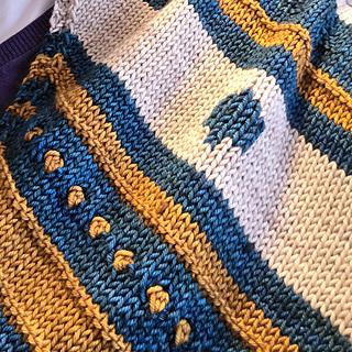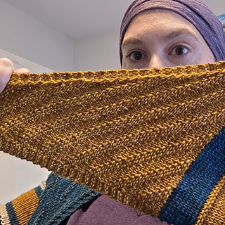 Sample made in MadelineTosh Vintage Tosh: 1 skein each Glazed Pecan (gold) and