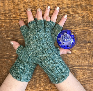Net Loft Gloves are inspired by the sea, the ropes, nets and lovely textures that you find in marina. Worked in the round these are beautifully cabled and cozy. Perfect for the transition of seasons and tasks that require warm hands and nimble fingers.