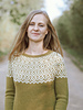 Ten sweter o klasycznym kroju, przerabiany jest na okrągło od góry do dołu. Karczek ozdobiony jest geometrycznym, powtarzalnym wzorem żakardowym, który nie sprawi trudności nawet początkującym w tej technice.