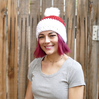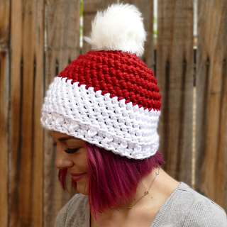 Bring a little holiday magic to your hook with the Noelle Pompom Hat, a cozy and festive pompom hat crochet pattern designed for the modern Mrs. Santa! Made with super bulky yarn, this hat works up in about an hour—making it perfect for last-minute gifts, holiday markets, or your own merry wardrobe.