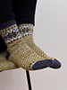 The sample pair was knitted in Filcolana Arwetta (80% superwash wool and 20% nylon, 210 m / 230 yds / 50 g), colorways 234 Slate, 977 Marzipan and 136 Mustard