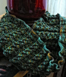 Not a Pair of Socks! is started flat, and then joined into a twisted loop and finished in the round into a cowl. The Scarf is knitted in a reversible, garter lace rib pattern . The lace pattern is a 6 row repeat which is very easy to learn. This project can be completed with about the same amout of yarn as a pair of socks, so if you are tired of knitting socks or want something special to feature the luxury or Indie yarn in your stash- this is a great pattern.