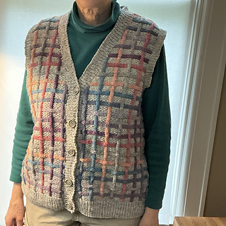 The Old School Woven Vest is worked in pieces, 2 fronts and 1 back. The pieces are then sewn together and the ribbings around the armhole and neckband are then added. The woven knitting requires that you are familiar with intarsia and stranded knitting. I suggest that you use yarn bobbins for the vertical warp columns.