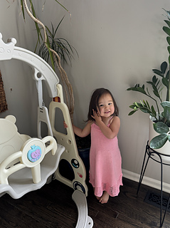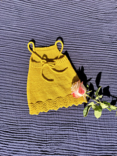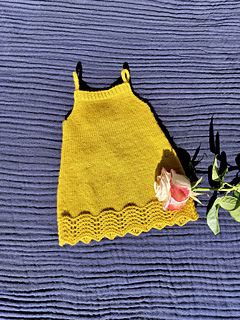 This is a simple knitted dress with tie shoulders and a simple dropped waist.
