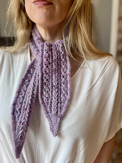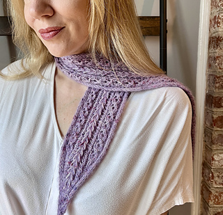 Scarf sample shown measures 4.5”/11.5 cm wide by 40”/102 cm long.