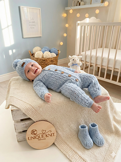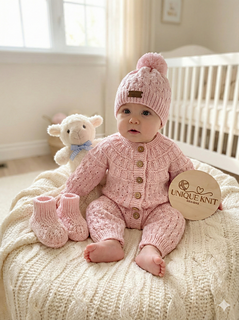This beautiful romper set is knitted from the top down on single-pointed needles. It has clear line by line instructions.