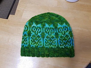 This is a fun owly hat that is worked from the crown back to the crown. Yes, it is double thick! This serves as a multi-purpose. The double thick hat is extra warm and cozy while it hides all those pesky strands of yarn from working the owl chart. Bonus, you can wear the hat with the owl side or the lining side out. It is complete reversible! Pair this design with a soft squishy yarn, and you won’t want to take it off.