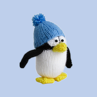 Pablo the Penguin braves the chilly Antarctic weather in their little bobble hat. You don’t use any tricky colour-work to knit your penguin, simply change colour at the end of a row to knit stripes. Designed by Amanda Berry @fluffandfuzz, the penguin is knitted in acrylic DK yarns on single pointed needles (not in the round).