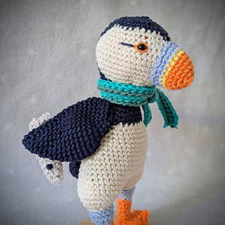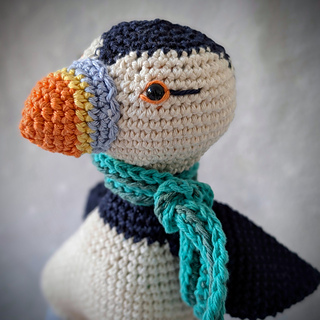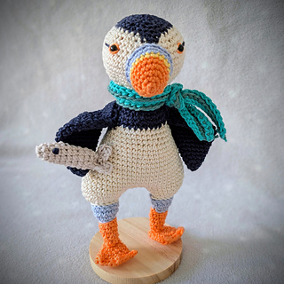 I have long dreamed of going to see the puffins off the coast of Wales in person so when my husband gave me this sweet card for our anniversary, I couldn’t resist transforming the illustration into an amigurumi toy.
