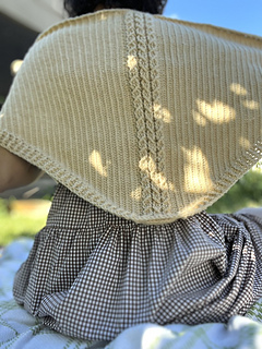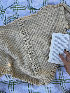 Let this shawl be an invitation to cocoon with your favorite book. Its central crochet cable represents the book’s spine while the ledge stitch on either side mimics the pages of said book.