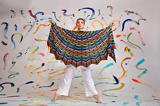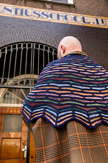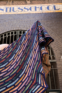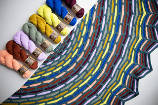 Painting Bricks is a splashy semi-circular shawl. Easy garter stitch is combined with stockinette stitch stripes and slipped stitches for an exciting new Westknits shawl project. Two skeins of the main color are combined with contrast colors in West Wool Bicycle. You can add as many contrast colors as you like to paint the bricks with your leftover color pops.
