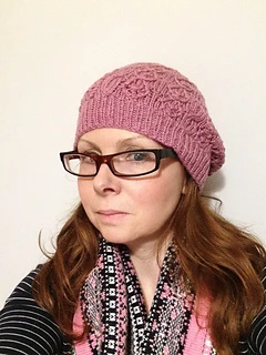 A hat that incorporates both cables and lace, worked from bottom up in round.