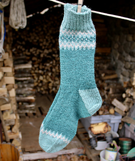 There are some special features in this pattern that will be appreciated by veteran and novice knitters alike: the rib pattern runs down the entire leg and across the instep for maximum comfort and a perfect fit. The sole of the foot is in stockinette to keep it smooth and non-irritating. The toe shaping is the popular wedge shape with the last few stitches grafted together for a seamless fit (instructions and video link in the pattern). The design is well-suited for outdoorsy types, or just anyone who appreciates a warm, stylish and comfortable sock.