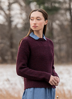 Knit in Woolstok Worsted, this drop shoulder pullover is worked from the bottom up and seamed. With beautiful texture and 27 colors to pick from, cast on and make this your new favorite piece.