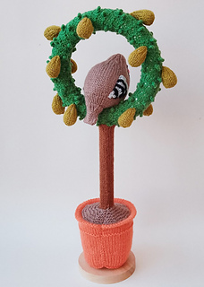 Available as a digital download immediately after purchase, you can cast on and start knitting your Partridge in a Pear Tree Table Decoration right away.