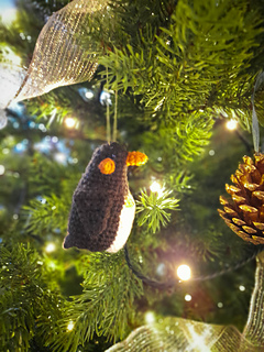 This little penguin is the perfect size for a hanging ornament, but his flat bottom also allows him to stand up on his own so you could use yours to decorate tables or even as a little toy for children.