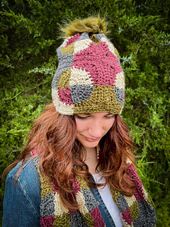 The Patchwork Revelry Beanie is an enchanting patchwork style hat that weaves together timeless granny squares into a bold, geometric stunner!