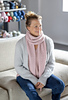 Der Hauptteil wird in gerader Form weiter in unserem beliebten Frieda-Muster gestrickt, wonach der Schal zur anderen Seite hin durch Abnahmen wieder schmaler wird.