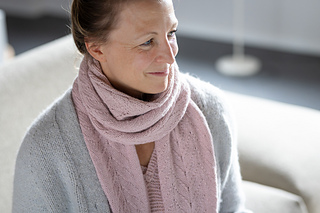 The main part is knitted in a straight shape using our popular Frieda pattern, after which the scarf becomes narrower again on the other side through decreases.