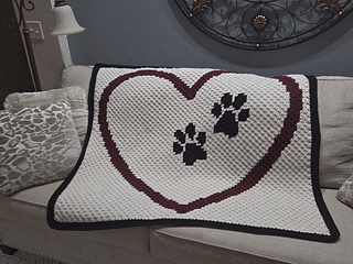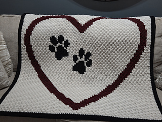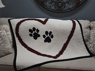 The Paws on My Heart Blanket is a fun way to show our love for those who have left paw prints on our hearts. Made corner to corner with half double crochet stitches, this blanket grows almost as quickly as our love for those precious four legged family members.