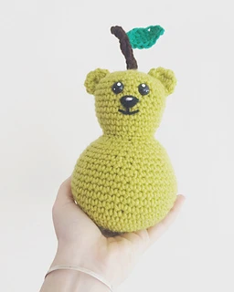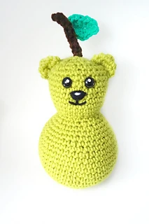 What do you get when you cross a big, furry forest animal and an apple’s delicious cousin? …A P…Bear! This cute, squishy amigurumi treat will perfectly round out your stuffy collection. An excellent handmade gift for the little (or big) teddy or fruit lover in your life! Designed by Nikky of Innabox Design and brought to life in yarn by me.