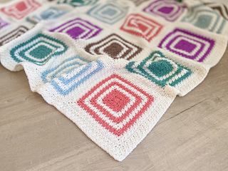 This pattern brings a modern twist to a timeless stitch, combining a pebble-like texture with subtle pops of colour. Using the lemon peel stitch, you’ll create 25 squares in five contrasting shades, each set against stripes of a soft cream main colour. The result is a fresh, vibrant design that highlights both the stitch detail and the interplay of colours.