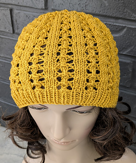 This 8ply Beanie is worked in a lovely but simple lace stitch and has a rib brim. The crown shaping rows are written out for you, to ensure the pattern stays correct while you are decreasing.