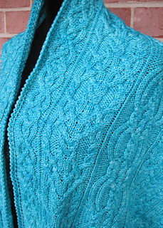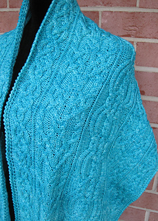 his is a pattern for an ornately cabled shawl, comprised of three separate cable stitches.
