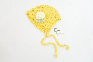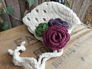 Yarn: Worsted (medium) weight yarn, approx. 70 (96, 110, 114, 120) yards and small amount fingering weight yarn for rose. Try to choose a yarn with a bit of stretch to it for this project for the best fit.