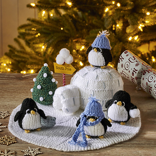 This set of toys will keep the little ones occupied as they imagine tales of chilly adventure, or to create a centre-piece for your Christmas table. The knitting pattern includes the instructions to make the penguins, hats and scarves, igloo, mat, tree, sign-post and little fish.