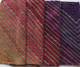 Once the center has reached its full width, half the stitches are put on hold while Side 1 is worked on the bias (increases on one edge and decreases on the other.