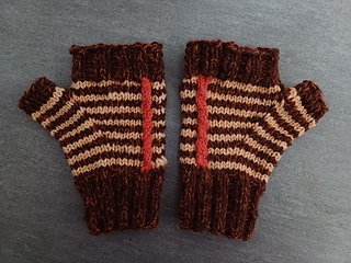 The handpsun mitts are an Adult M due to the density of the yarn while the mitts knit with commercial yarn are an Adult S. You can easily accommodate your handspun yarn of a different wpi by increasing (or decreasing) the size of the mitts by adding (or subtracting) multiples of 4 sts (for k2p2 ribbing)- 2 to the palm and 2 to the back side of the hand between the cable and the thumb.