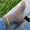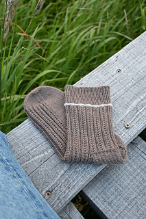 The Petitcodiac Socks are the classic ribbed socks, reimagined. They are worked in an interesting broken rib stitch that gives them a little something extra, while still being comfortable and practical. They are knit from the top down and feature a traditional heel flap and gusset.