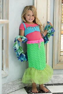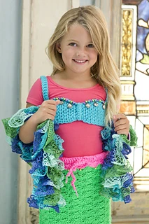 Little girls will love pretending to be a pretty mermaid for Halloween or for playtime dress up. This ensemble includes crocheted skirt, bra top and ruffled boa. It’s simply enchanting!