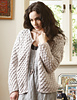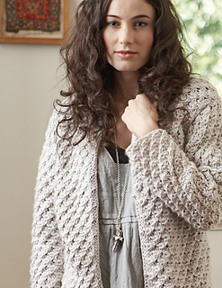 Simple unshaped long-sleeved cardigan with round neck and modified drop sleeves, positive ease.