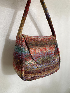 A cute little structured purse for spring, Phoebe is knit in garter stitch without any seaming, then felted in a washing machine. Yarn is held double for a quick knit on large needles. Try her in your favorite spring hue!