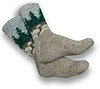 The pattern suggests knitting with Harrisville Designs yarn: Worsted weight 2-ply, approx. 200 yds. per 100 gr. skein.