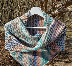 Mosaic technique means you are only knitting with one color per row - the pattern is fully written and charted. Modification instructions are also provided to make your shawl smaller or larger.