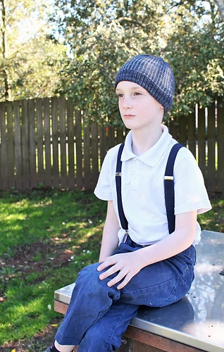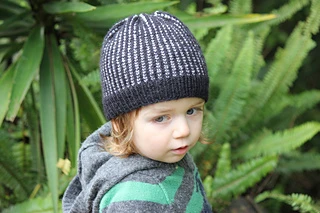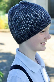 It features a simple slip stitch pattern utilising two colours, designed to imitate pinstripe patterning.