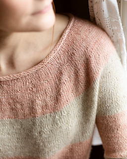 Mallineule on neulottu Lucky Omen Yarnsin Pellavainen-langasta (70 % eurooppalainen luomuvilla, 30 % belgialainen pellava, sävyt Punastuva persikka (V1) ja Pellava (V2).