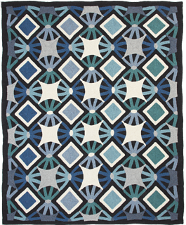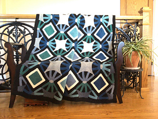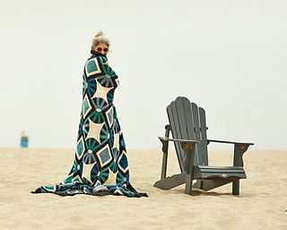 Pirouette twirling colors dance across its surface in shades of green and blue. This blanket can be worked modularly with no sewing or in vertical strips sewn together.