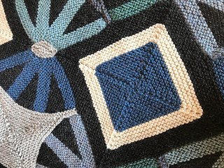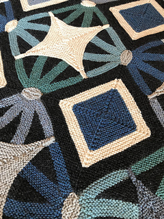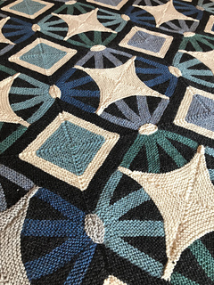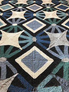 The blanket uses a variety of techniques. For both constructions, you’ll use short rows for garter stitch, 3-needle bind offs, and pick up and knit. Then depending on whether you choose the modular or strip (sewn) construction, you’ll either knit in the round or sew.