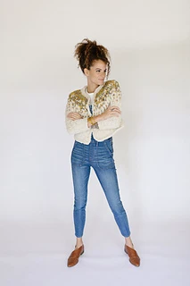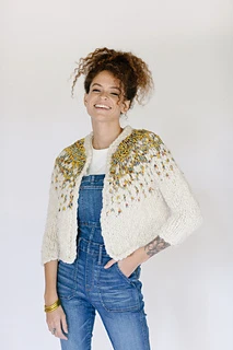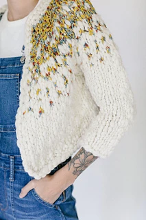 Welcome to the Pixelated Cardi Pattern. This design is a forever favorite around Knit Collage and was originally released as part of our Fall 2019 Knitalong. The Pixelated Cardi is a simple, yet beautiful colorwork cardigan that is knit up using our super soft Spun Cloud and unique printed Wildflower yarn. This is an ideal pattern for those wanting to try colorwork for the first time. The sweater is knit top down, making it easy to customize to a longer length both in the body and for the sleeves if you like. It is also seamless!