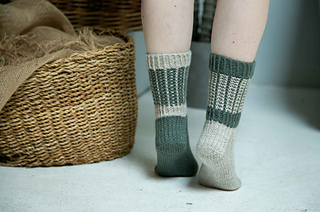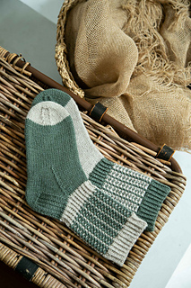 These socks are worked top-down, featuring a classic heel flap with gusset and a shaped toe for comfort and elegance. The mosaic pattern is created using simple slip stitches — easy to knit, but visually striking.