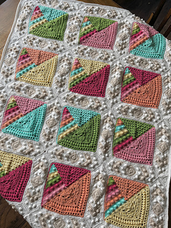 This blanket is a play on fabric quilting. The color layout will make any palette look pulled together, and the final piece is sure to bring playful joy.